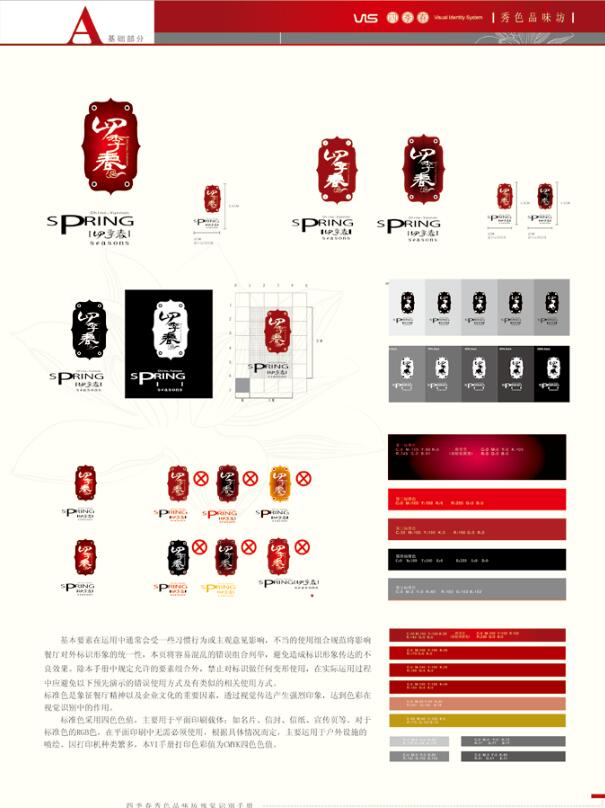 以上是我公司人員對北京四季春VI設計的初步方案提稿 本圖是四季春VI設計中的黑白字體應用 以上是設計四季春的VI整體顏色定位 四季春VI設計的工牌應用 , 以上是我公司設計的北京四季春VI系統,整體顏色以藍色為主,對其公司企業色以及中英文字體全面進行設計。