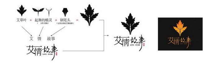 這個LOGO還有一個細節,就是在艾草葉的底部結合了鋼筆頭的設計,像是在寫一段故事,和品牌名能高度融合。而文字沒有用厚重的字體,選用的是類似剛寫出來的瘦瘦的鋼筆字,正好和"故事〃 的概念吻合。