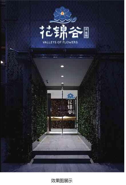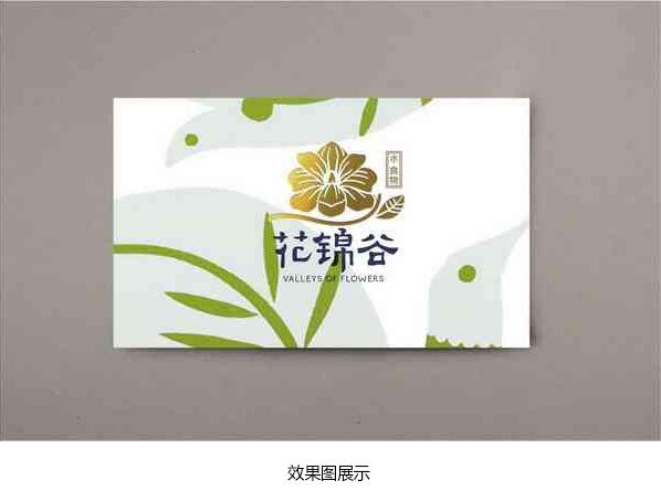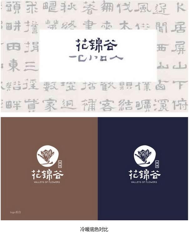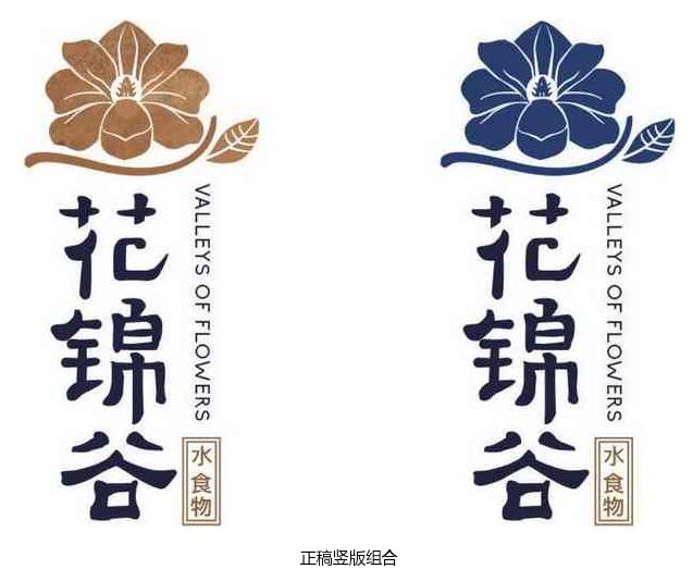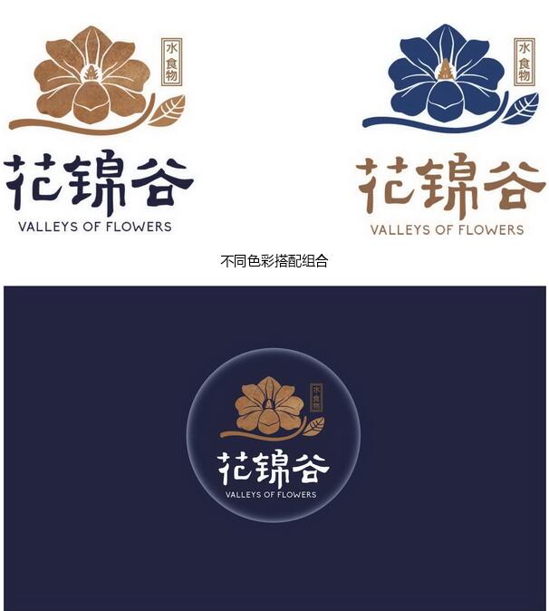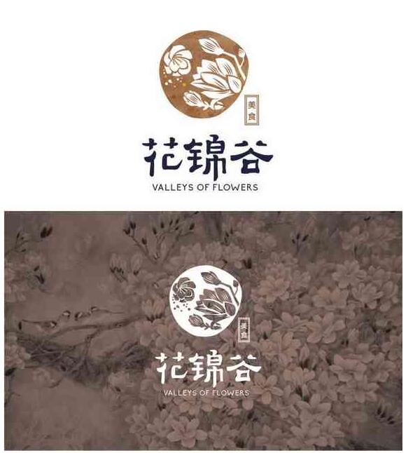 結合客戶給的經營理念〃優質的水、優質的食物〃,想讓來店體驗的顧客能享受其中,不光是對食物的享受,還有對店內整體環境的享受,由此我們對〃花錦谷〃的釋義為"山谷中一方清泉,陽春 中一抹花色〃。第一套方案