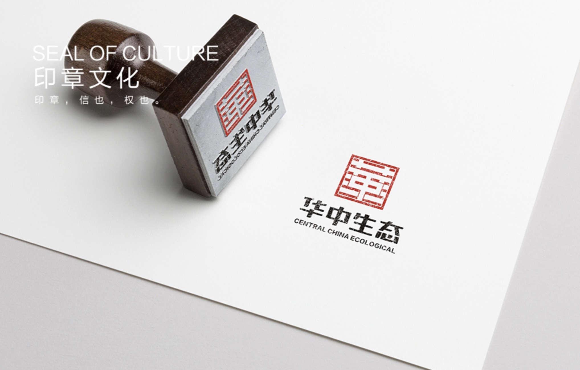 logo設計結合了華中兩個字的變形組合,整體形成印章形式的文化標志,把中華印章文化融入進logo里面,應用起來大氣美觀