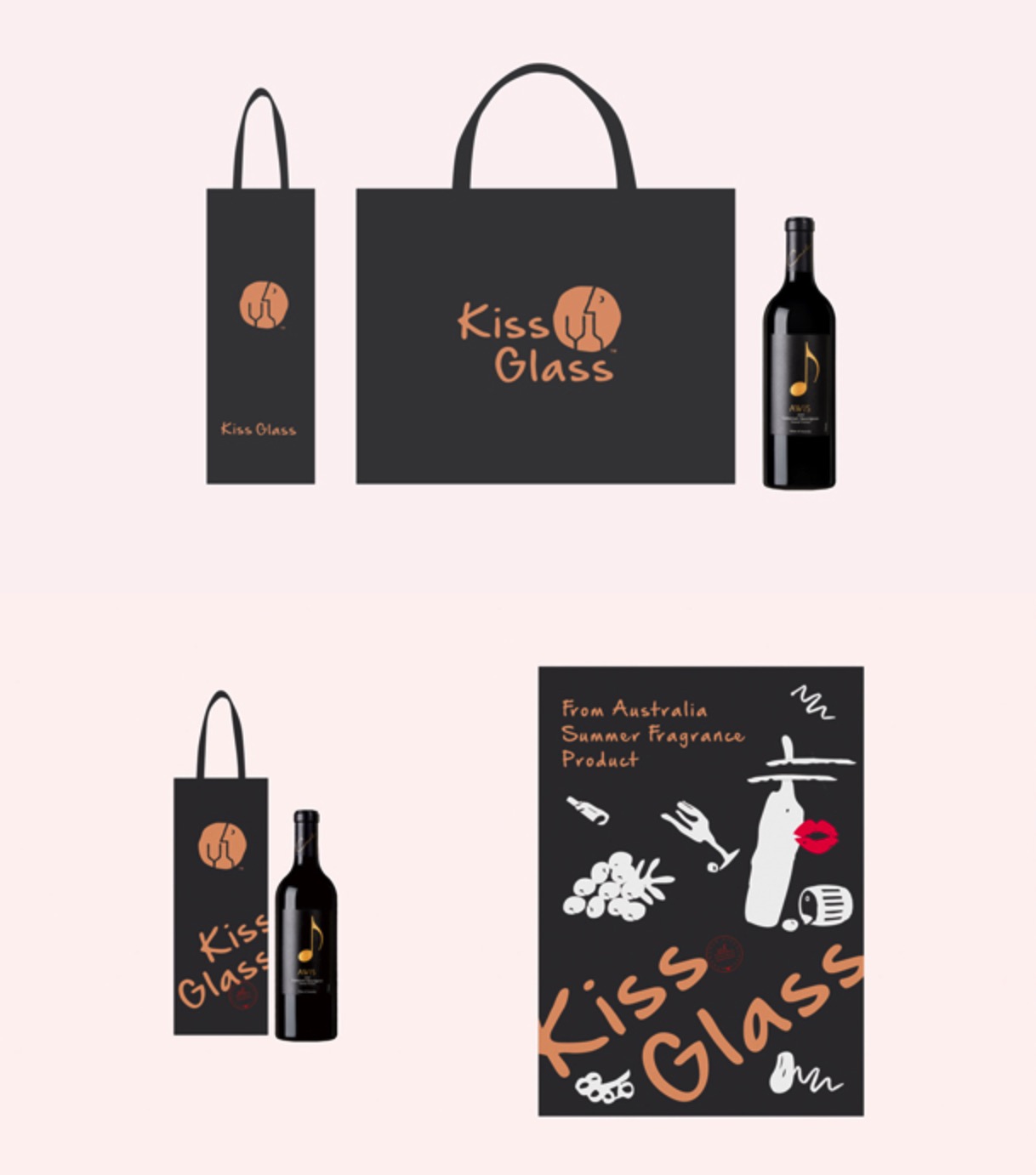 Kiss Glass品牌紅酒推廣設計logo欣賞