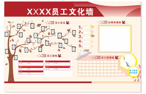 職工文化墻設計一般包括了員工的日常活動以及展示等各方面的培訓,一定要建設一個積極向上、和諧的工作氛圍。