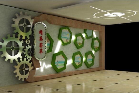 校園文化墻制作的文化普及方面,長廊可以做成虛實相結合,實物可以展示學生們做的模型造型作品,或者是雕刻方面的作品。圖片展示區,可以展示科技方面的知識,如歷史上有名的科技化學方面的任務知識。